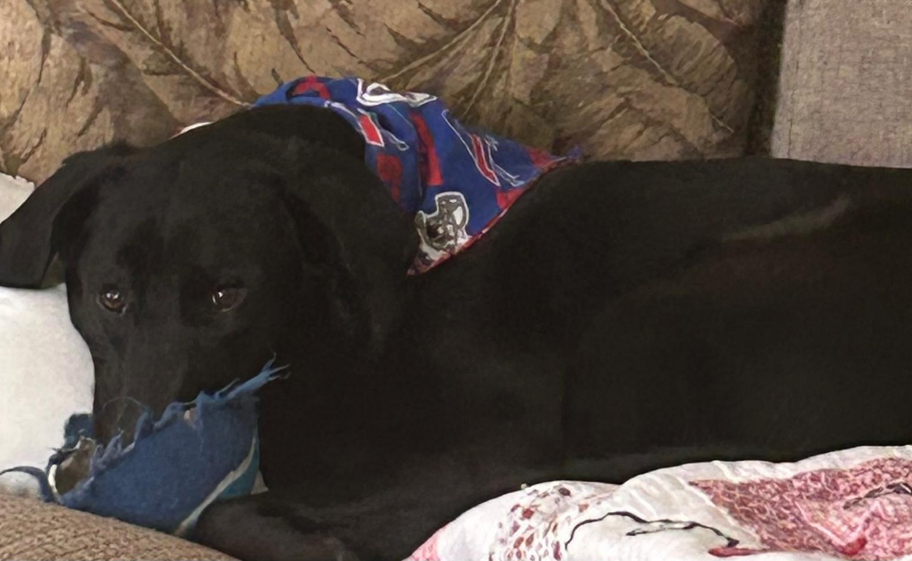 Piper, the rescue dog, sporting the Buffalo Bills! B716
